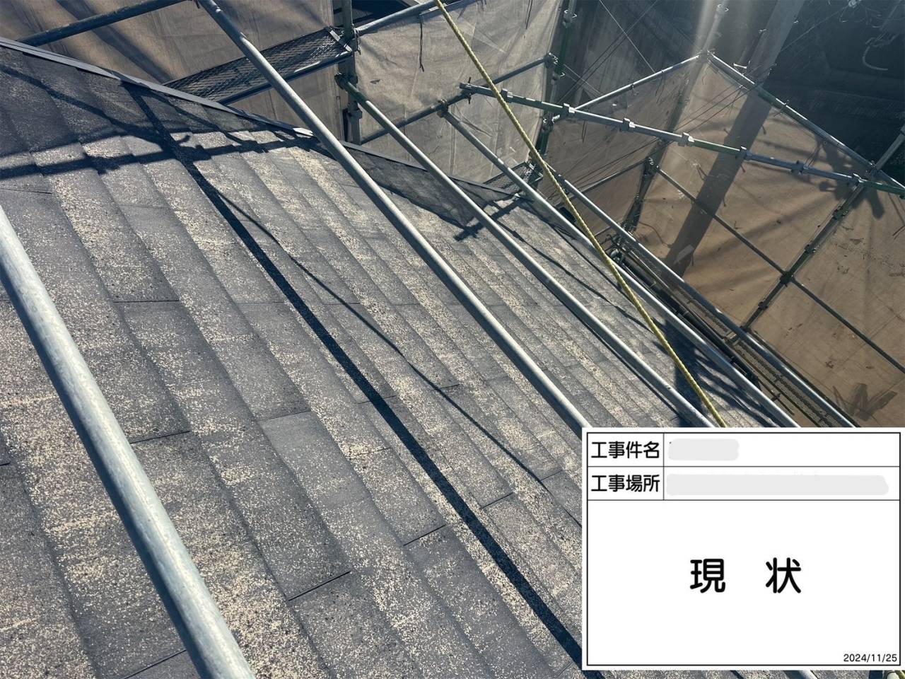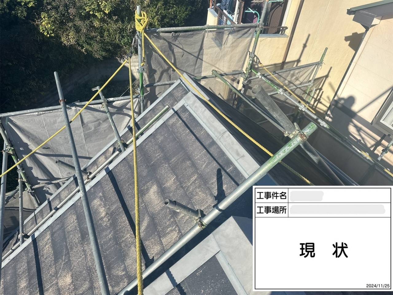 現地調査の結果、経年劣化によって外壁表面にはチョーキング現象(手に白い粉がつく状態)が見られ、シーリング材は硬化・収縮しひび割れや剥がれが多く確認されました。また、屋根の表面は塗膜の退色や苔の繁殖が進み、防水性が著しく低下している状況でした。