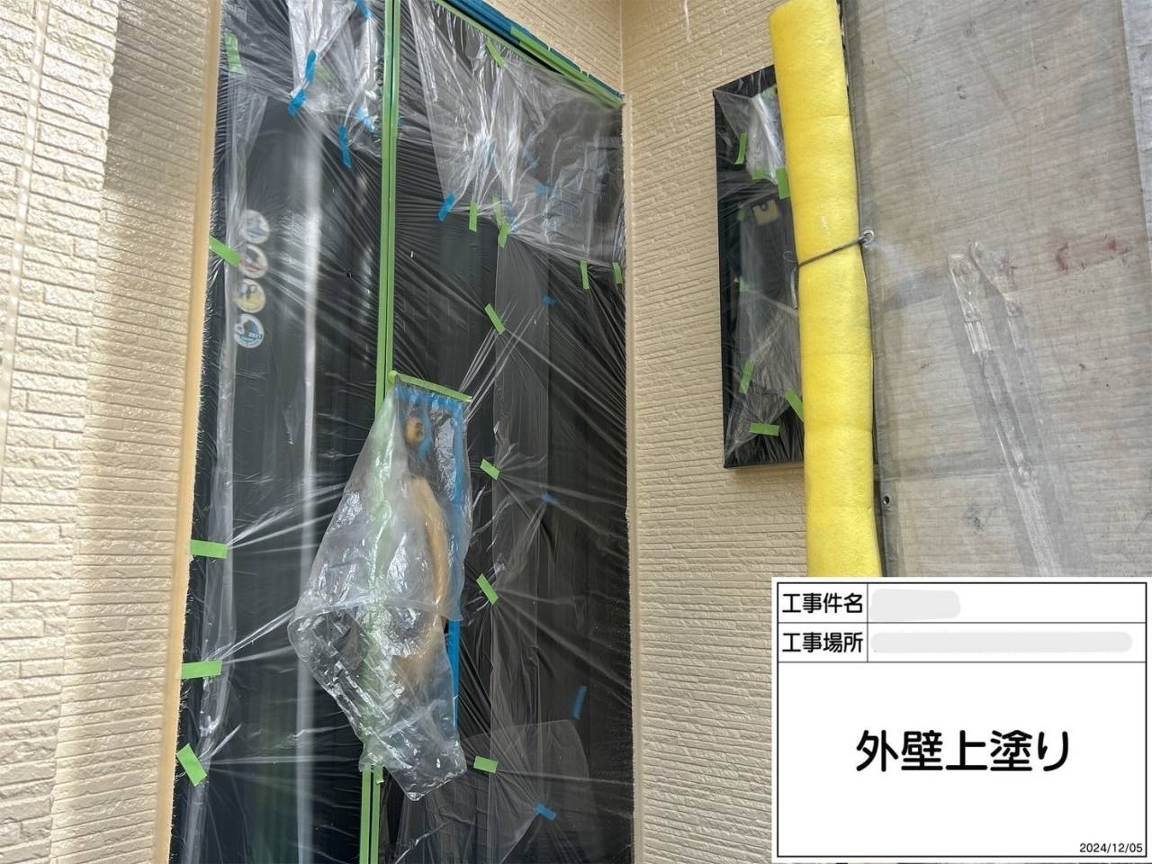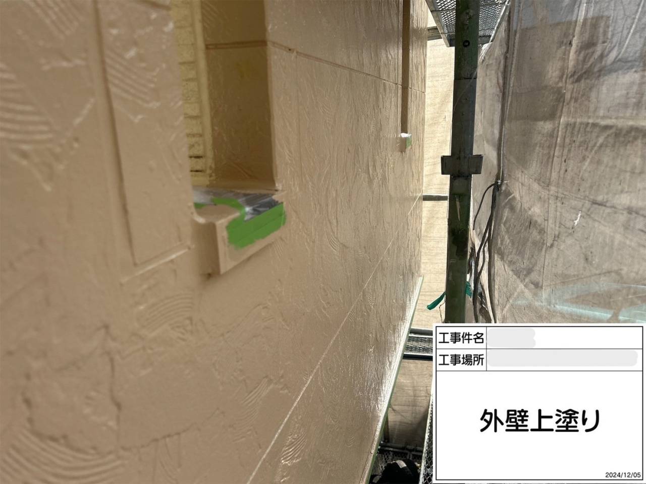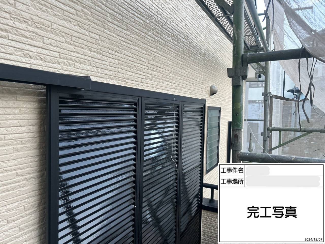 今回の塗装では、施主様のご希望をもとに、落ち着きがありながらも明るく洗練された雰囲気を演出する**明るめのベージュ×黒(シャッター・破風等)**のコントラスト配色を採用しました。