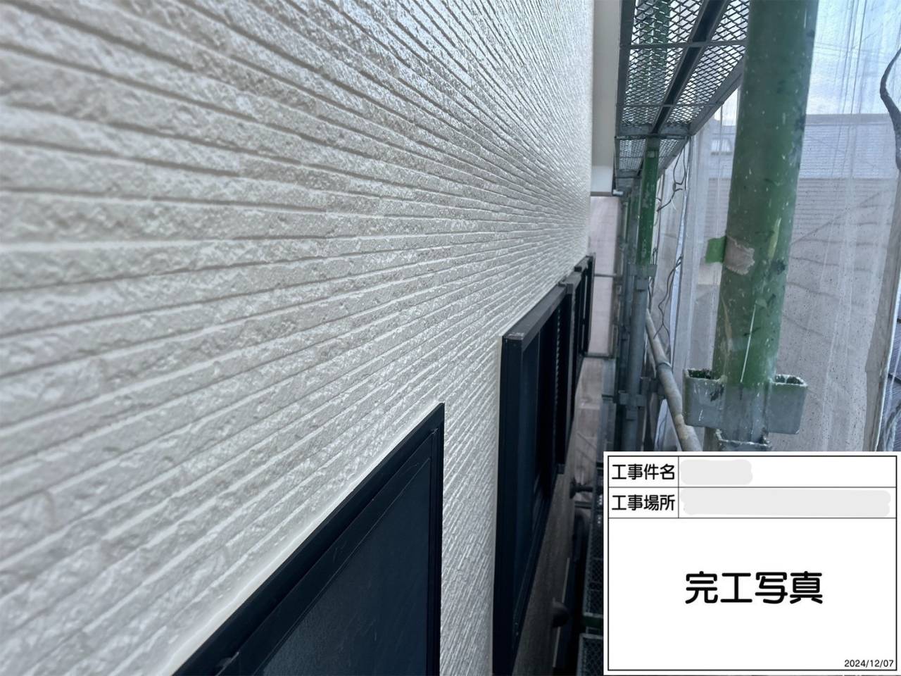 この濃色のアクセントにより、外壁全体が引き締まり、シンプルながらも高級感のある仕上がりとなりました。