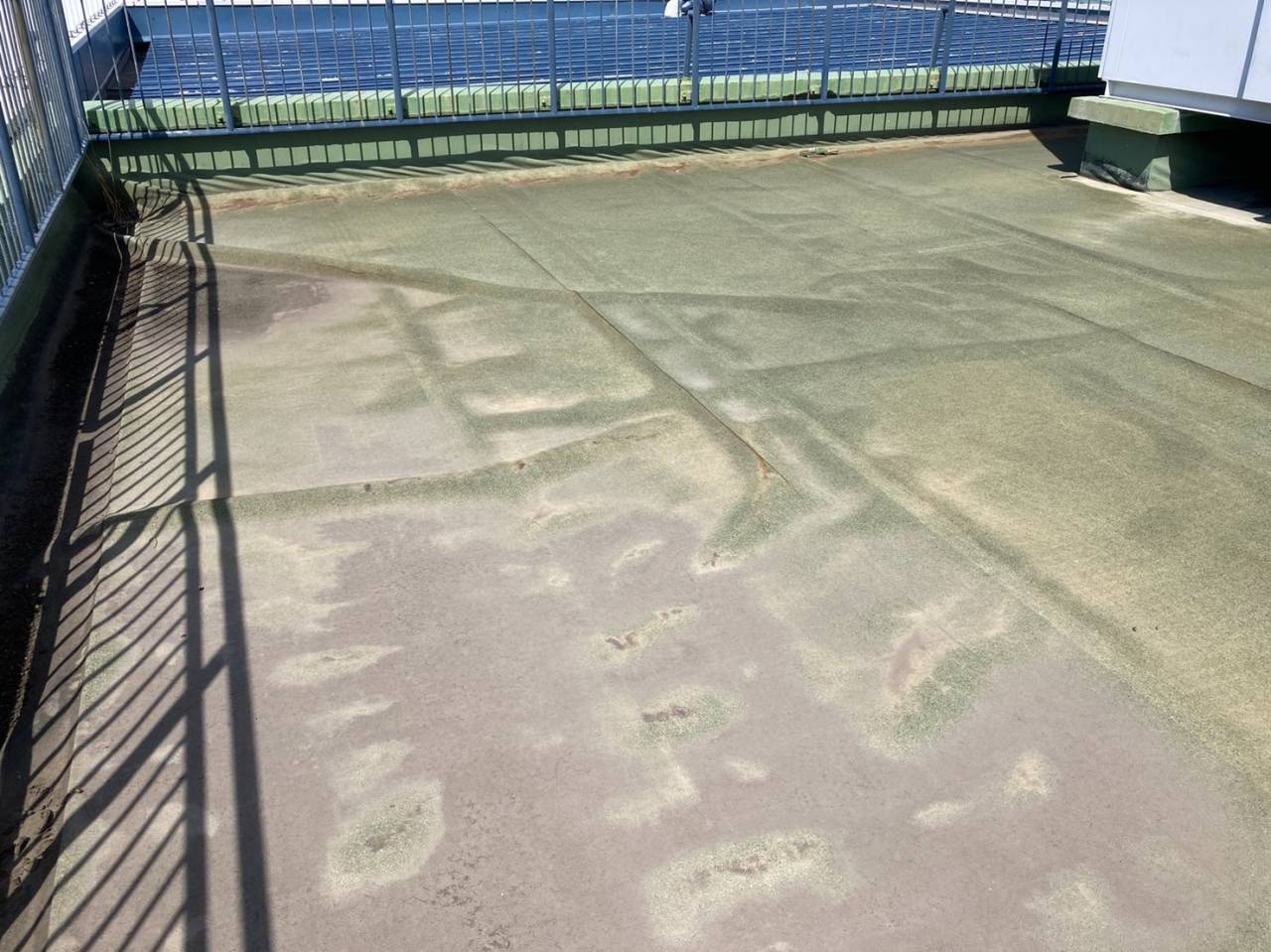 現地に入ると、まず目に飛び込んできたのは、既存防水層の著しい剥がれです。