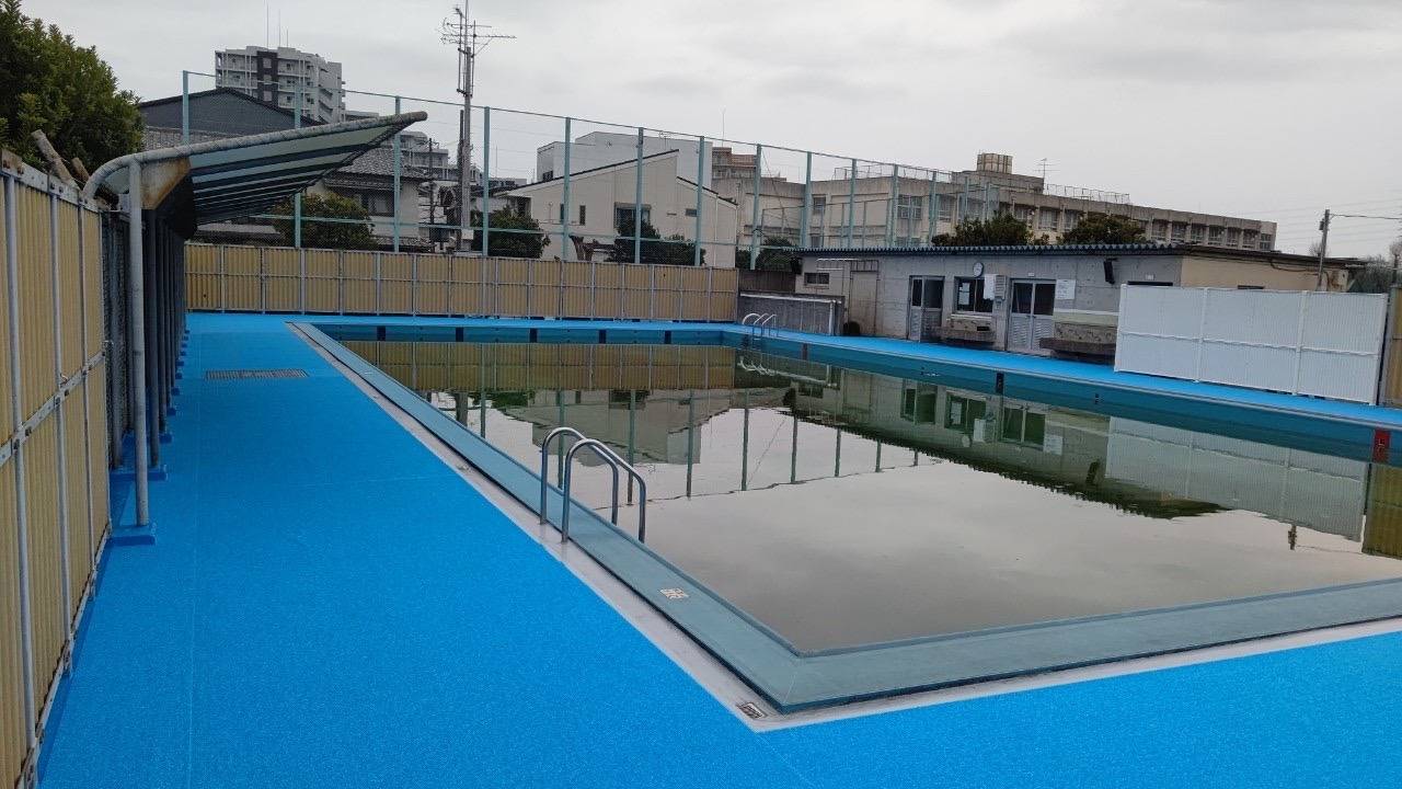 某小学校のプールサイドの施工過程の動画撮影に行ってました。