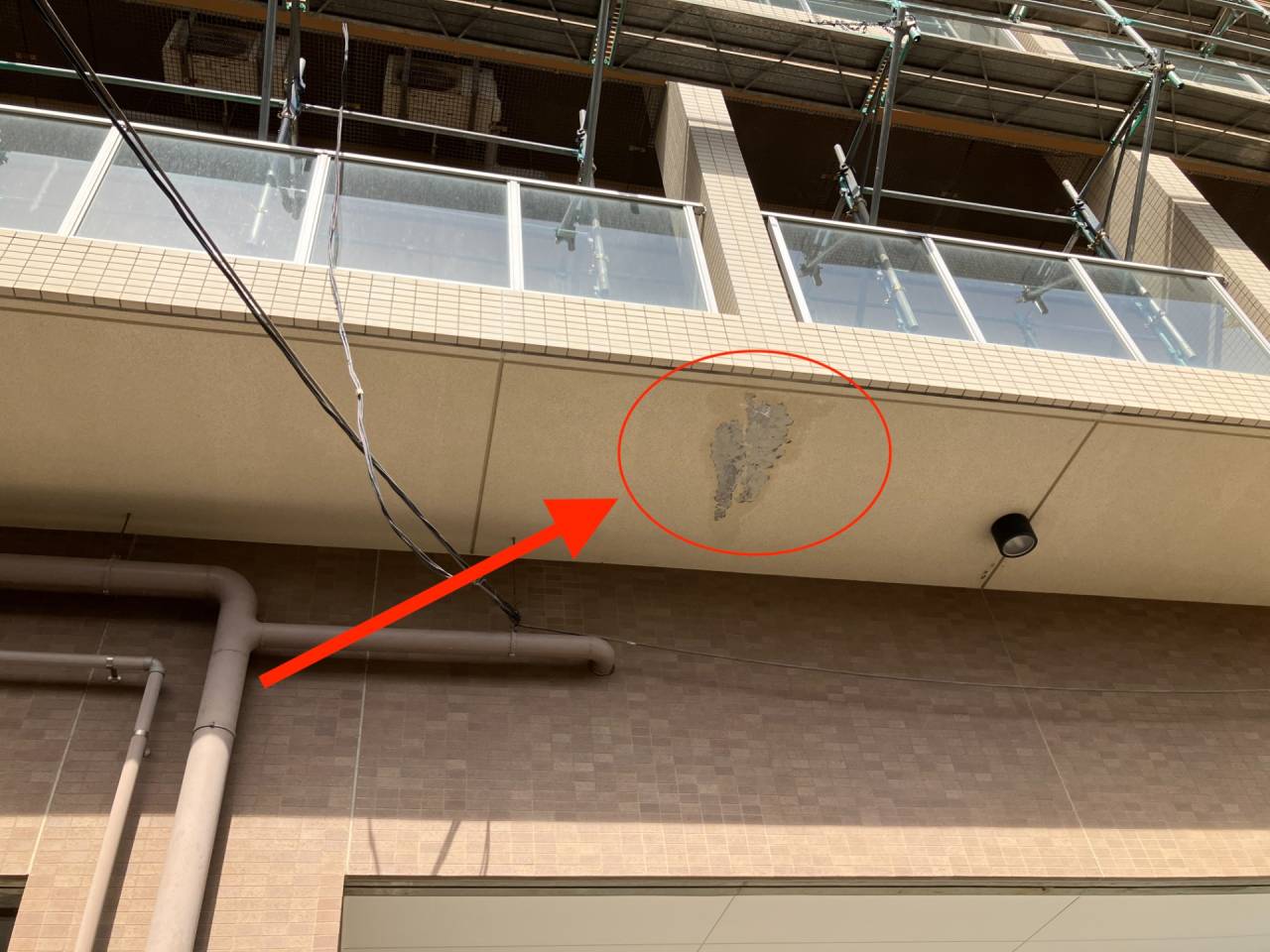 雨漏りでお困りな方へ 代表の山本と営業事務の高木及びスタッフが有益な情報を日々発信していきます。塗膜がめくれている状態の写真ベランダ下の天井部分の塗装が捲れてしまっているまたは、爆裂しているまたは、白化している…